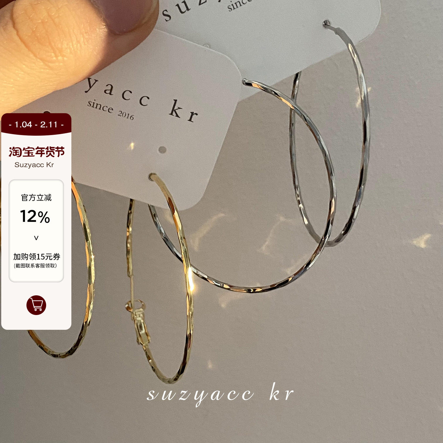 suzyacc kr简约小众设计金属大耳圈女2024年新款潮气质网红耳环