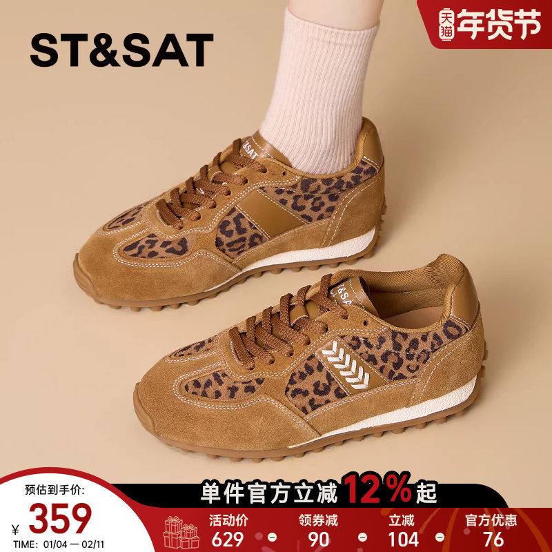星期六女鞋内增高德训鞋女款2025新款秋季复古棕色豹纹鞋子运动鞋