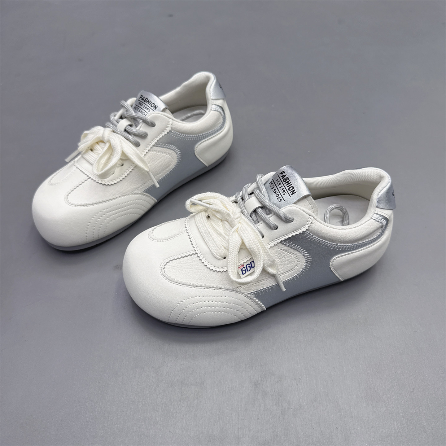 真皮女鞋内增高3厘米拼色德训鞋2026春新款双鞋带运动休闲丑萌鞋