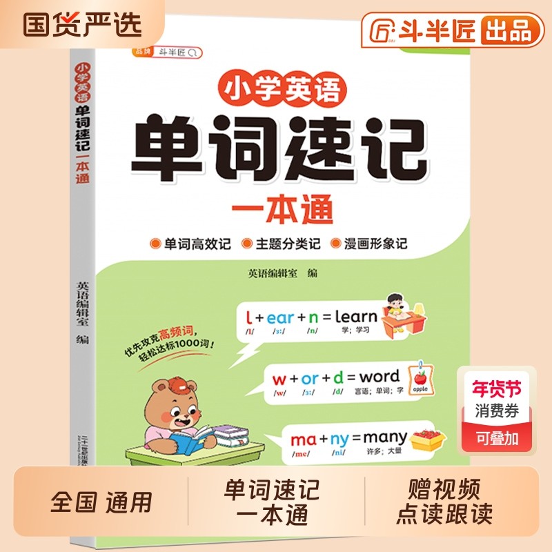 斗半匠小学英语单词速记一本通入门自学零基础词汇教材三四五六年级英语语法音标和自然拼读记背神器手册汇总表总结6年级公式口语