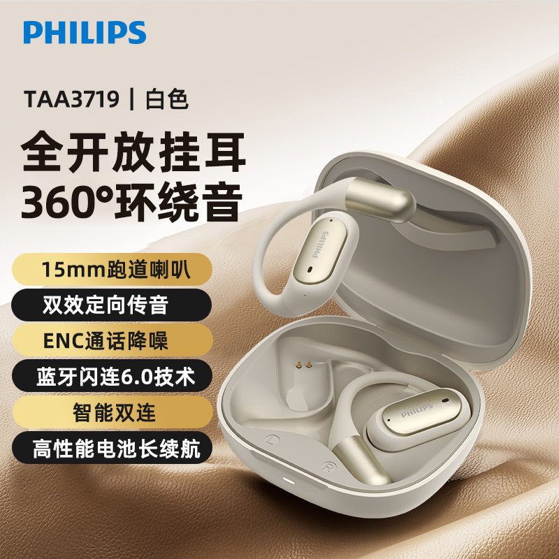 飞利浦TAA3719耳机挂耳式无线蓝牙耳机开放运动跑步户外会议通话