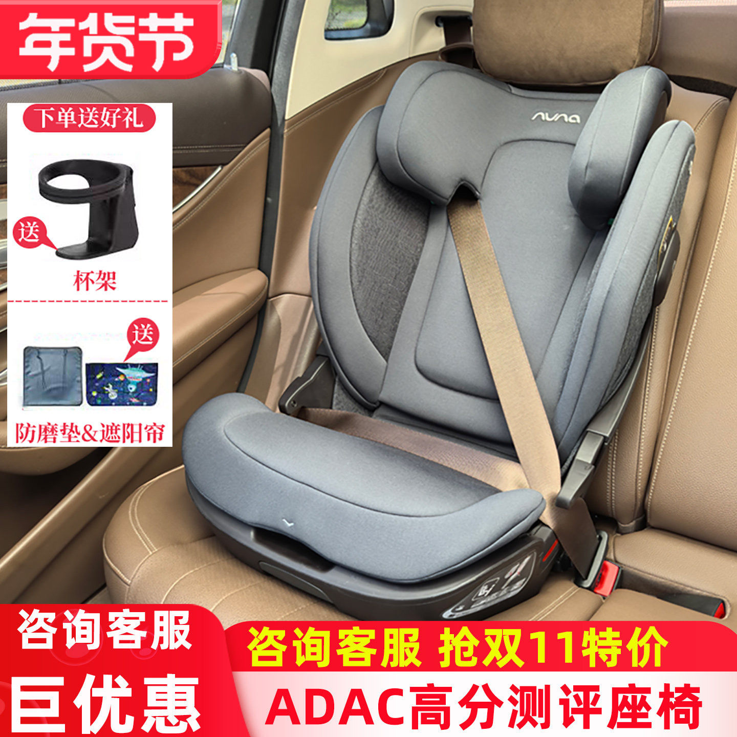 荷兰 Nuna aace儿童汽车座椅3-12岁安全座椅 增高垫 靠背可拆