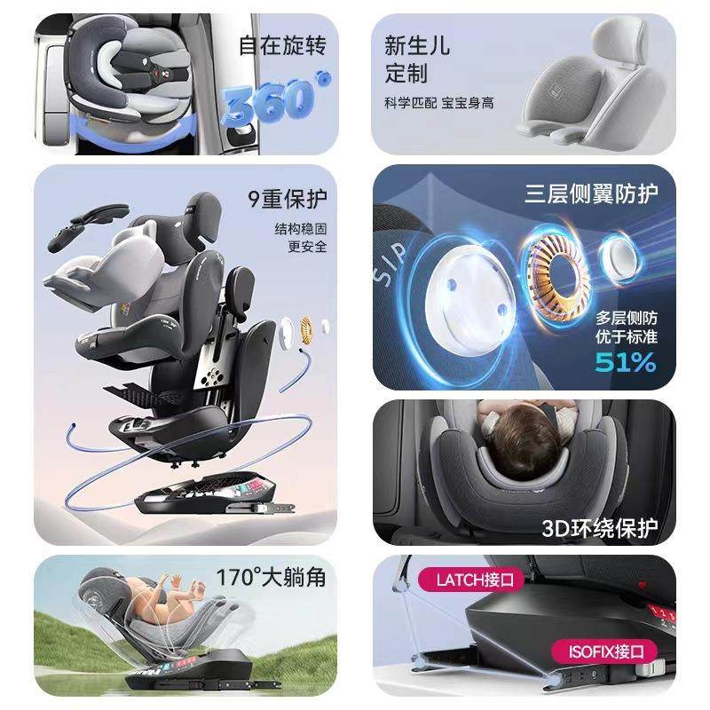 初婴贝儿童安全座椅汽车用宝宝车载360旋转0-12岁可坐躺通风加热