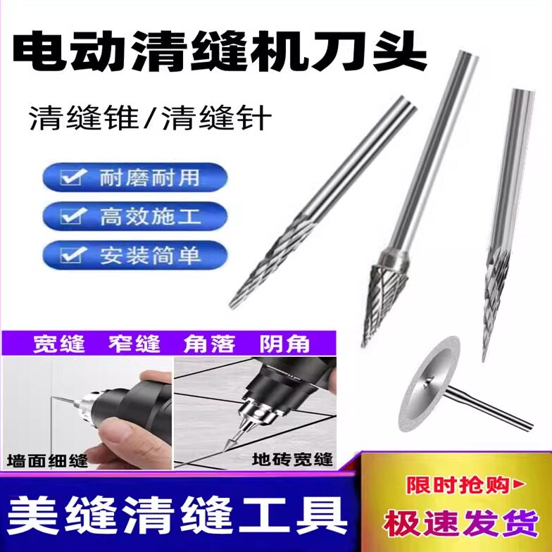 电动清缝机刀头角落清缝钨钢锥头瓷砖美缝剂施工清缝工具细缝磨针
