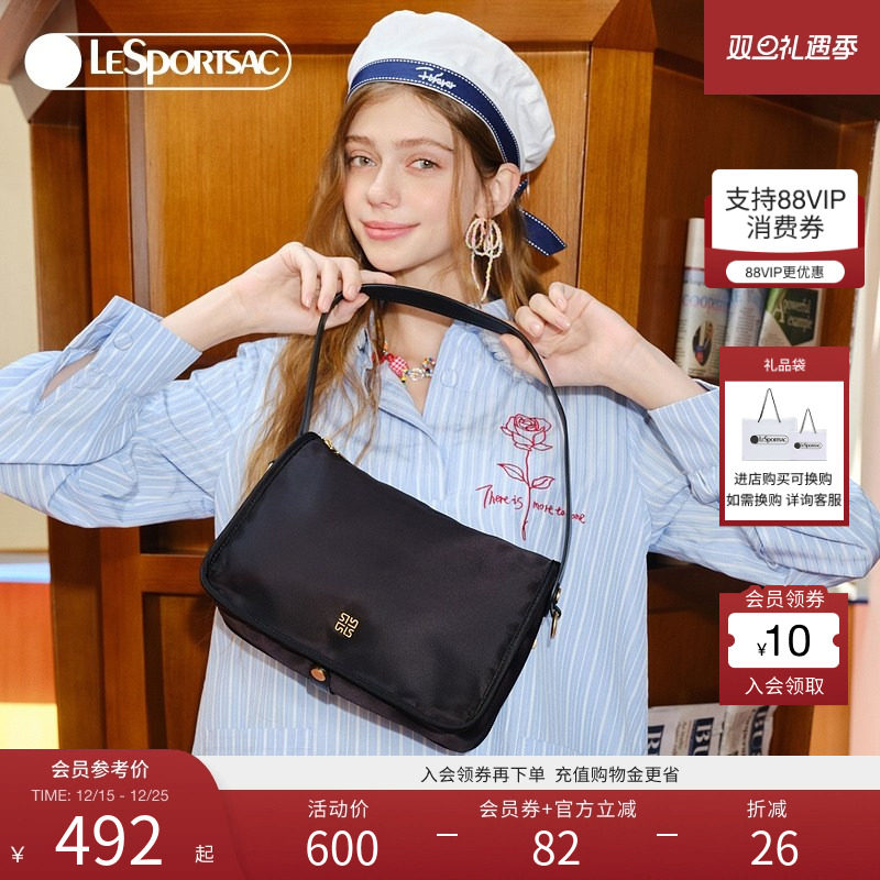 LeSportsac乐播诗黑色尼龙包小方包女斜挎包小众通勤包单肩腋下包