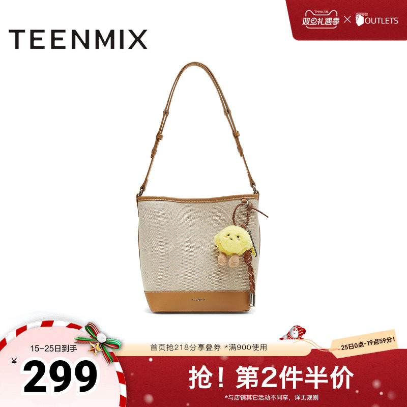 天美意2025秋新款商场同款水桶包单肩百搭通勤女斜挎包X3150CX5
