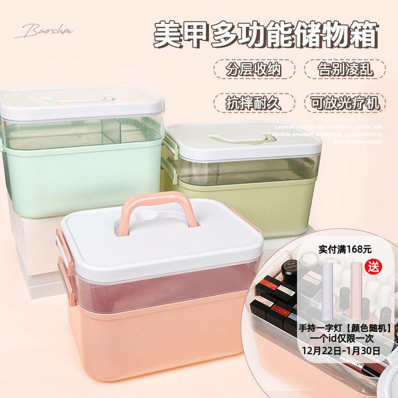 美甲工具箱大容量可放光疗机甲油胶手提式多层桌面收纳盒美甲师用