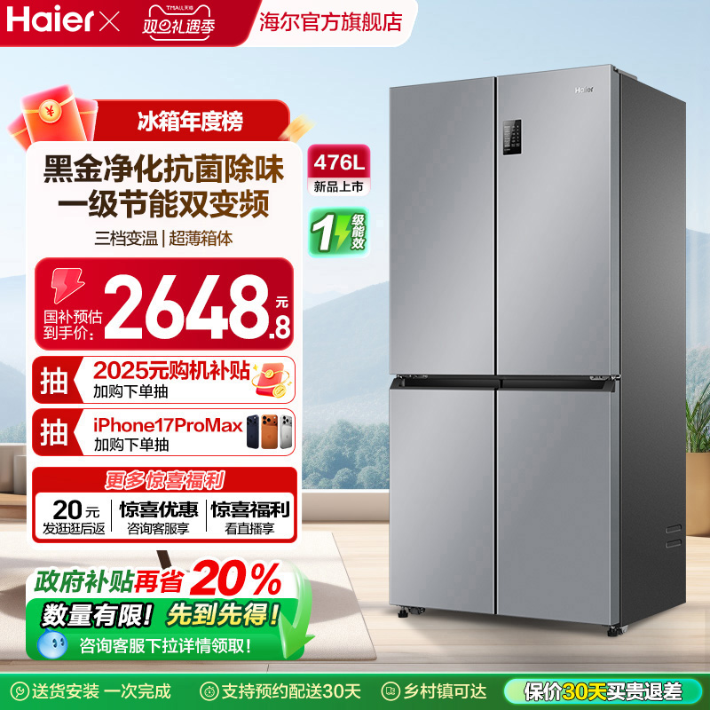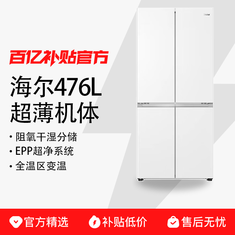 政府换新补贴海尔476L双开四门一级超薄风冷无霜家用大容量电冰箱