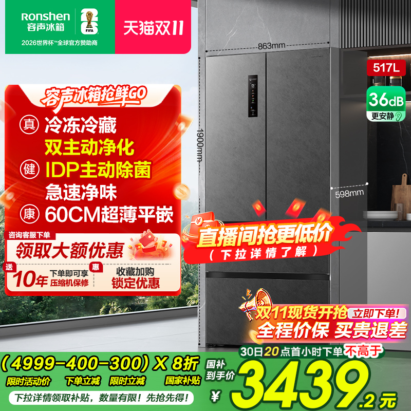 Ronshen/容声 BCD-501WD3MPZ双系统法式多门pro款双净IDP风冷冰箱
