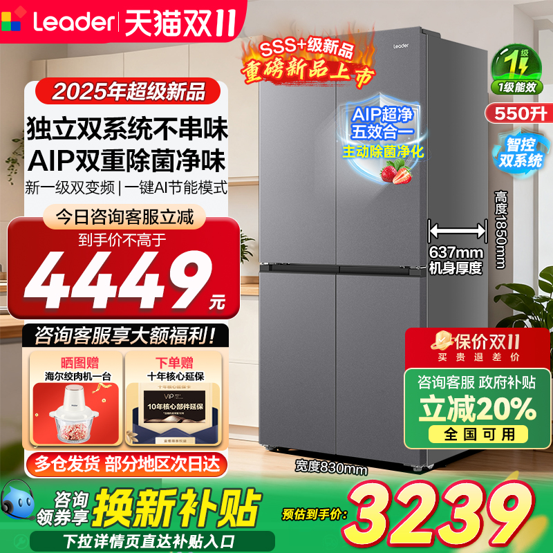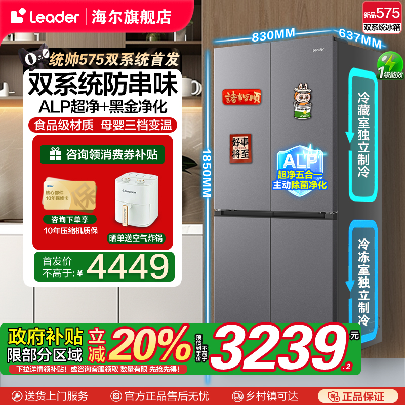 [新品补20%]统帅海尔出品575双系统十字对开门大容量1级风冷冰箱