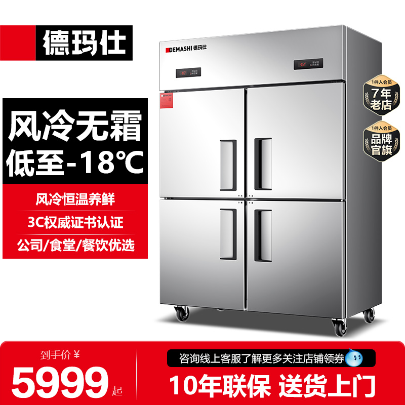 四门风冷冰箱商用冷藏冷冻厨房4开门雪柜双温大容量立式6门冷柜