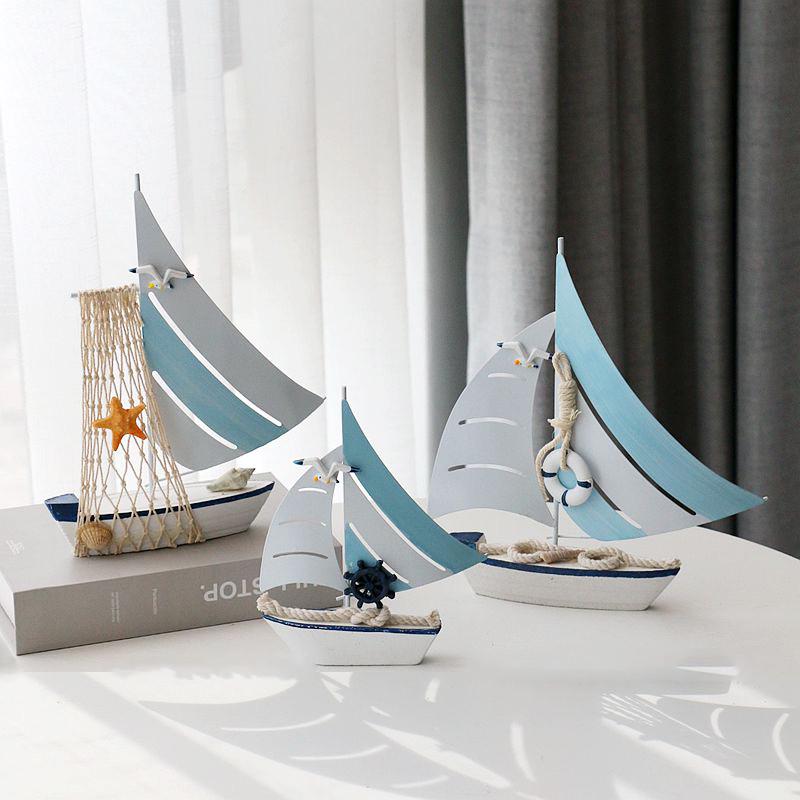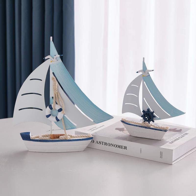 地中海帆船模型一帆风顺摆件木质铁皮小船工艺船书桌海洋风装饰品