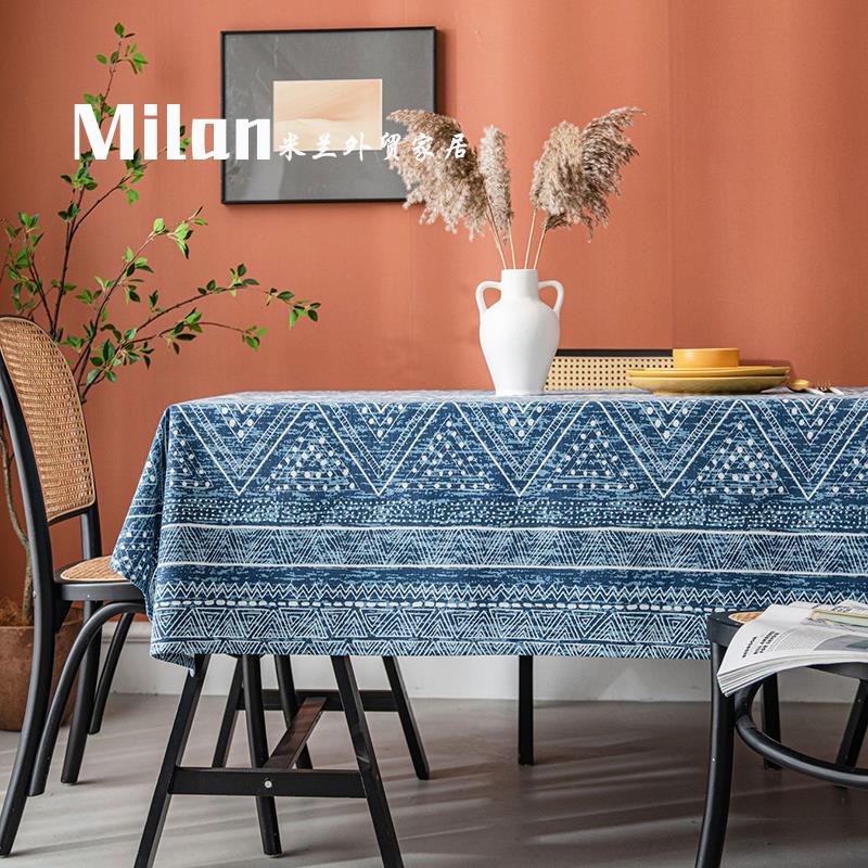 地中海蓝色摩洛哥轻奢棉麻桌布书桌E长方形复古餐桌布茶几垫台布