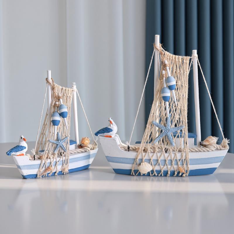 地中海帆船模型一帆风顺摆件木质海鸟小船工艺船书桌海洋风装饰品