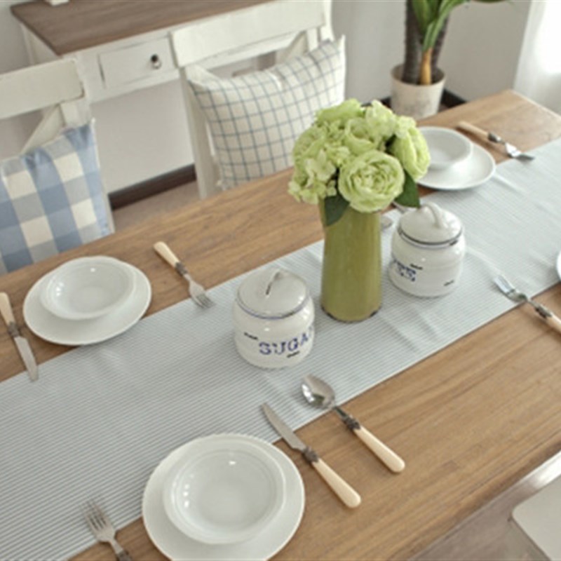地中海餐桌布浅蓝素色桌布布艺棉麻盖布圆桌茶几台布书桌条纹桌旗
