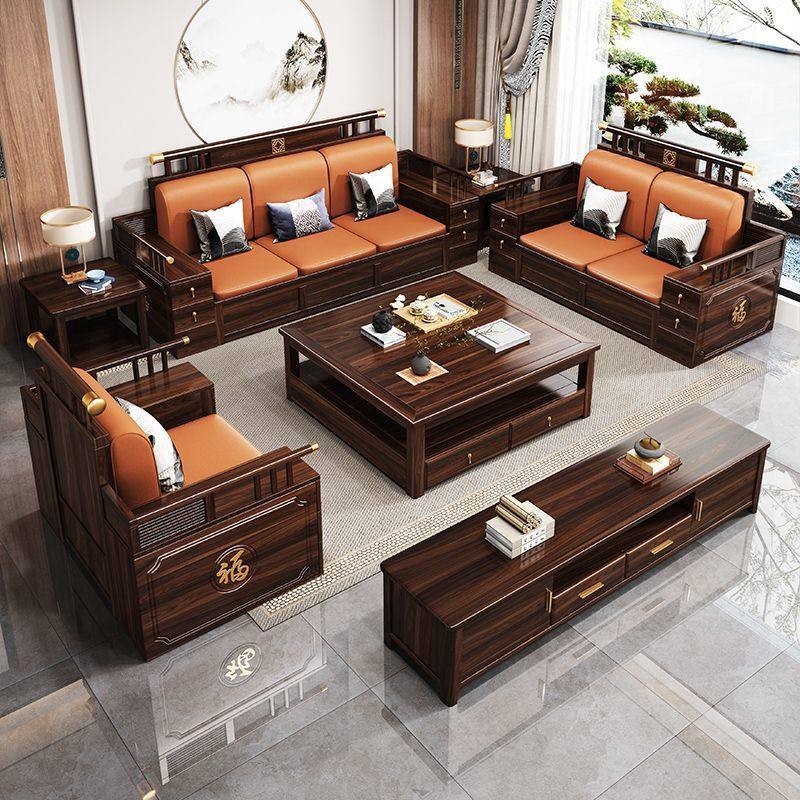 新中式乌金木实木沙发组合家用客厅大小户型冬夏两用储物客厅沙发