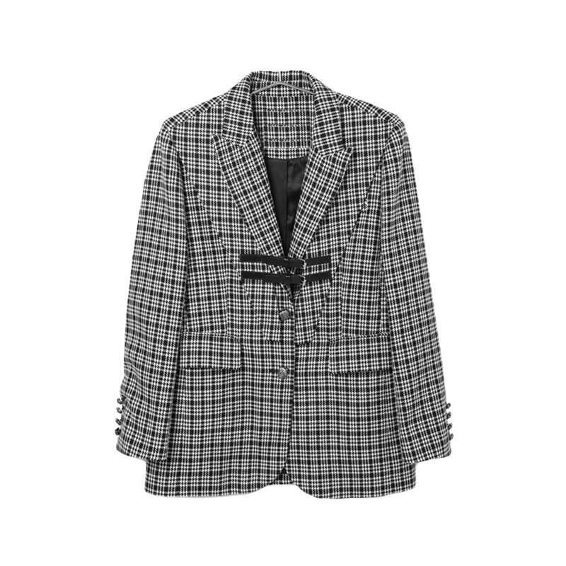 SourceWithU曼哈顿枫叶 格纹定制英伦风高级感千鸟格大衣气质外套