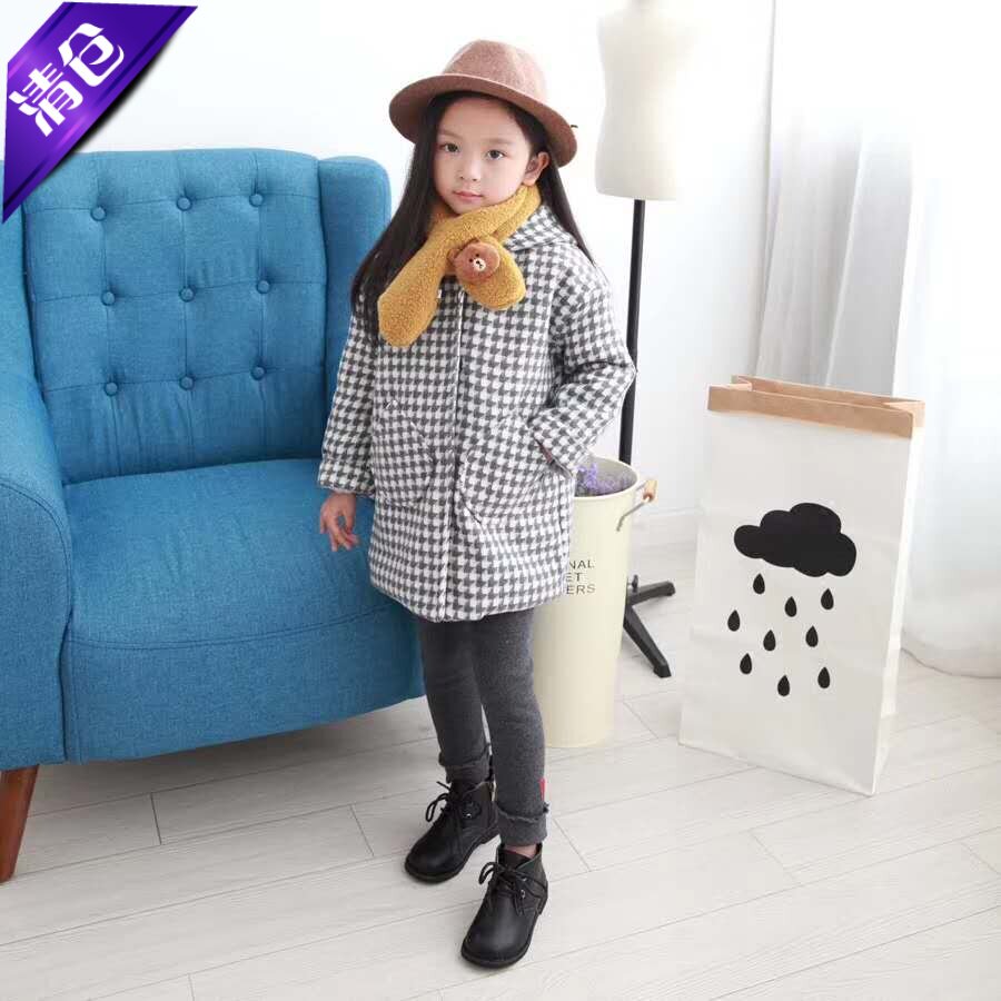 女童春秋冬装外套2024新款中小儿童加厚呢子外套女孩千鸟格大衣潮
