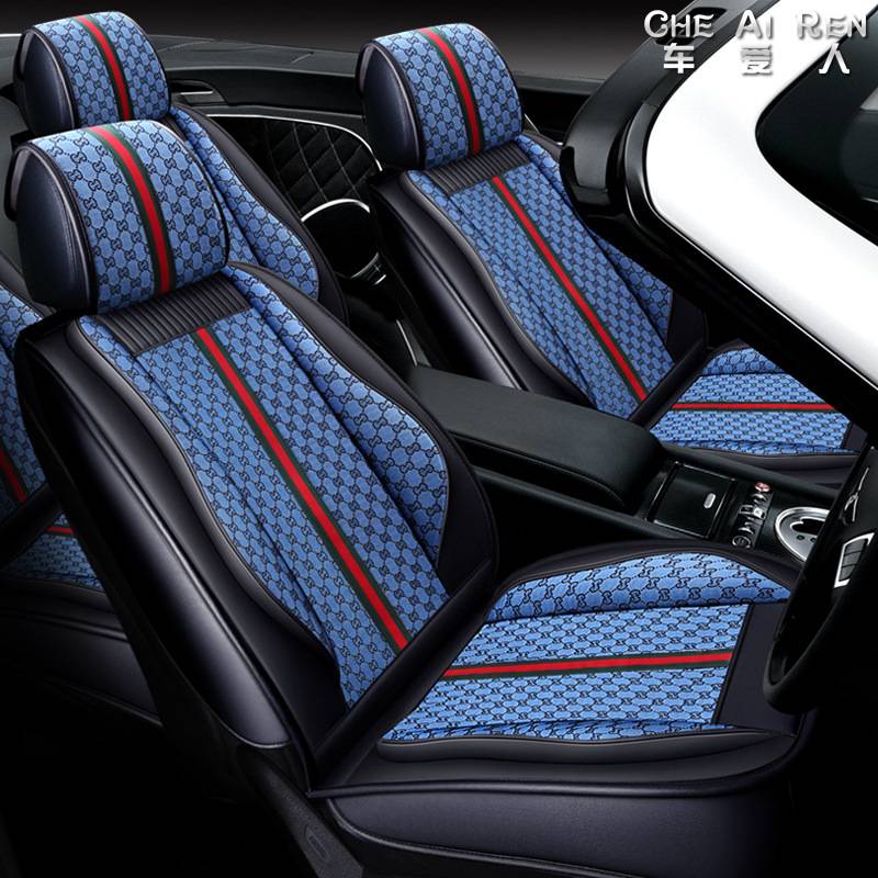 新福特福克斯翼虎嘉年华蒙迪欧全包汽车座套夏季卡通皮革亚麻坐垫