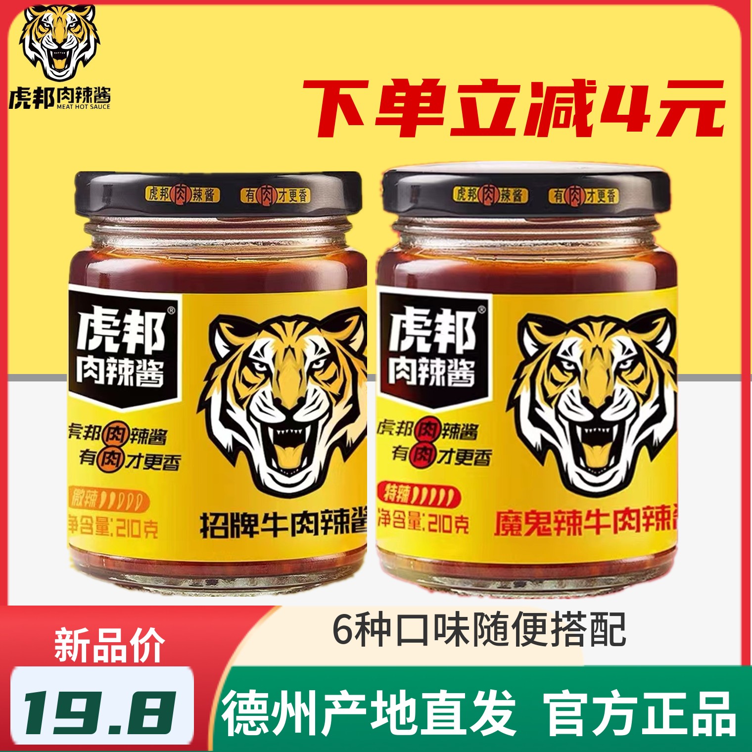 虎邦辣酱招牌香辣牛肉酱210g*2瓶网红下饭拌面酱魔鬼超辣辣椒酱