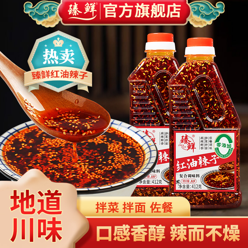 臻鲜四川红油辣椒油油泼辣子412g香辣超辣辣椒酱凉拌菜调料商用