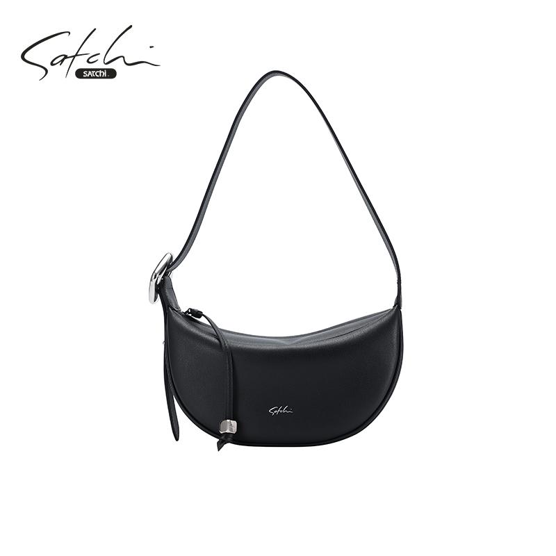 SATCHI/沙驰女包漫游系列单肩斜挎包高级小众牛角包真皮腋下包