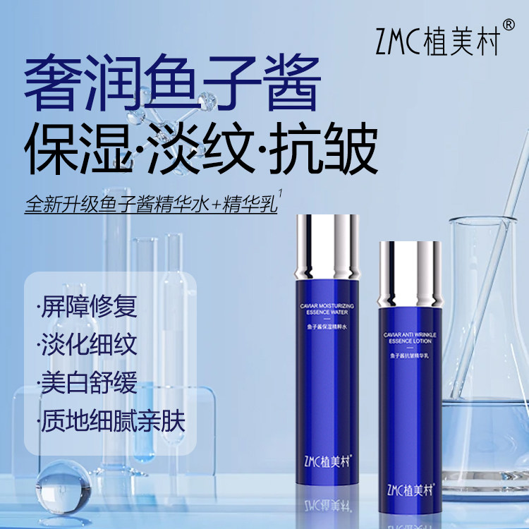 ZMC植美村鱼子酱精华水乳套装保湿淡纹抗皱美白修复精华乳护肤品