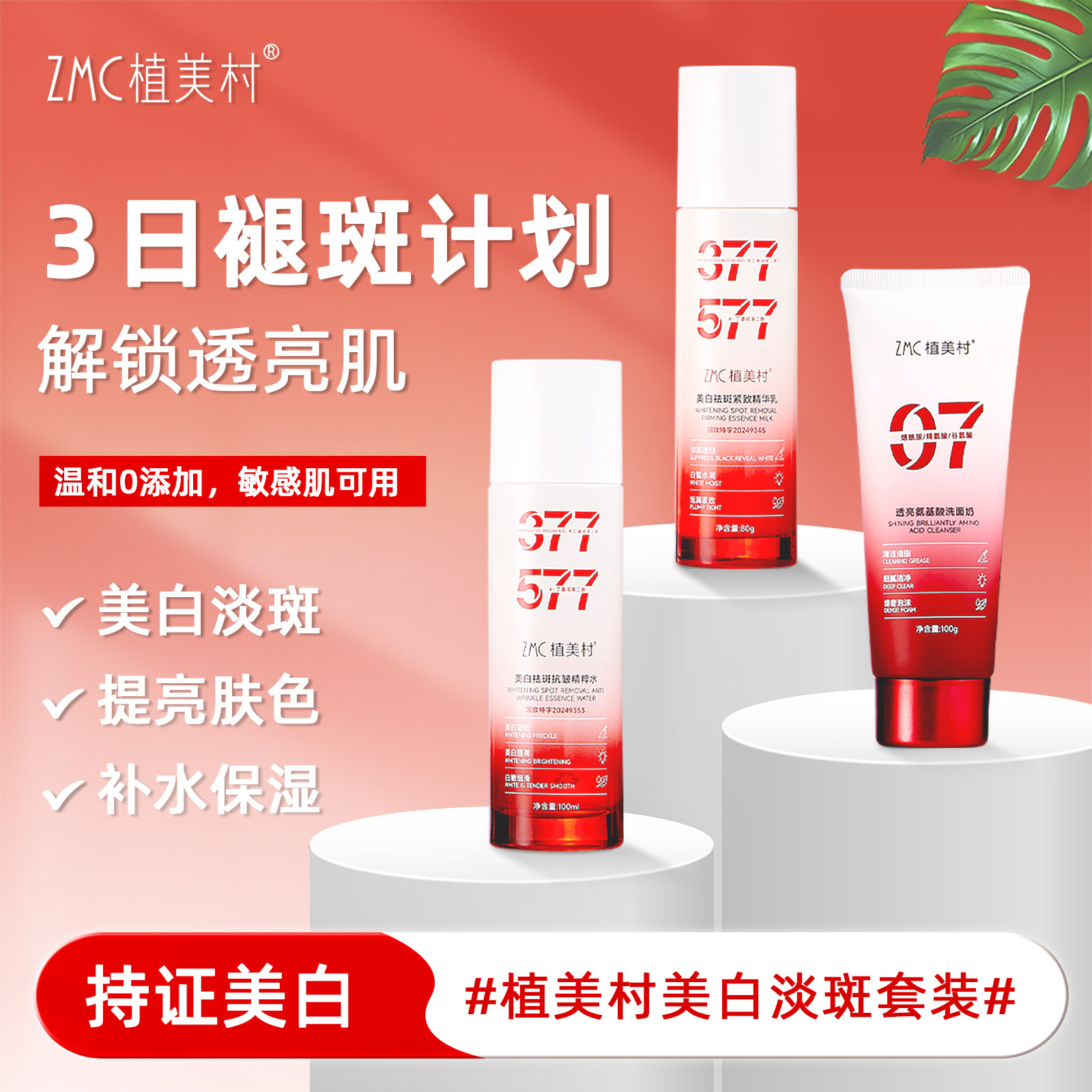 ZMC/植美村美白淡斑套装洁面水乳清透焕亮水润去黄提亮改善暗沉