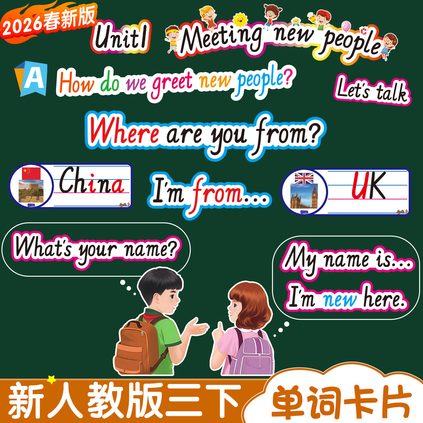 2026春新人教版PEP小学英语3三年级下册单词卡片句子型教学板书贴