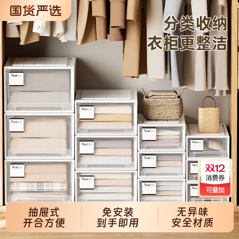 日本衣柜收纳盒整理盒收纳箱抽屉式家用透明衣物储物柜衣服整理箱