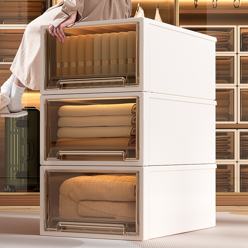 衣服储物箱塑料收纳箱抽屉式透明衣柜收纳柜内衣收纳盒衣物整理箱