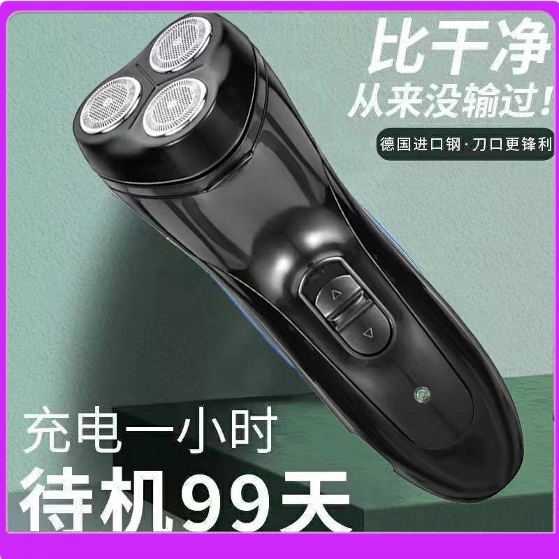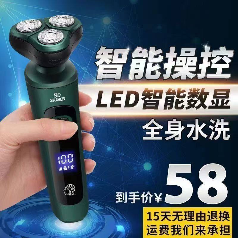 德系新款充电剃须刀男士电动三刀头全身水洗胡须刀智能刮胡刀USB