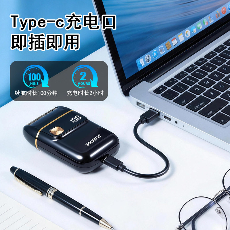 男士便携式迷你充电剃须刀 单头往复式智能数显胡须刀6200转数