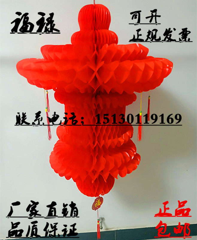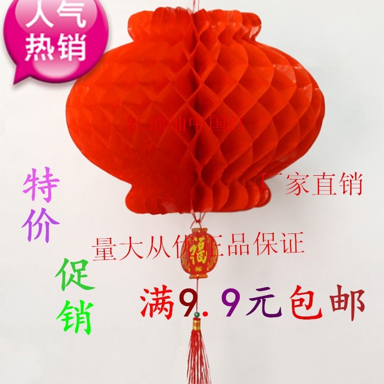 大红招财灯笼 结婚庆婚礼节日装饰灯笼 塑料纸质蜂窝小纸灯笼包邮