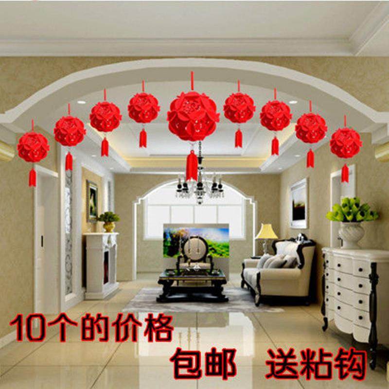 10个无纺布大红灯笼花球结婚庆喜字绣球福字元宵春开业节日灯笼
