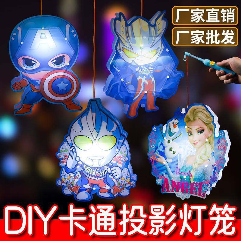 卡通灯笼投影炫彩镭射手提中秋花灯儿童diy手工制作节日灯笼元宵