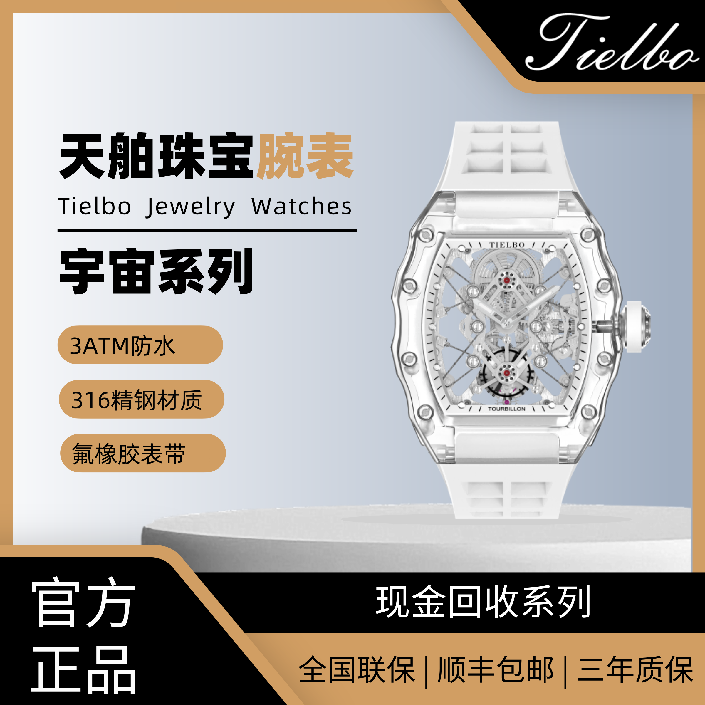 TIELBO天舶官方正品手表2026年新款陀飞轮男士机械镂空防水腕表潮