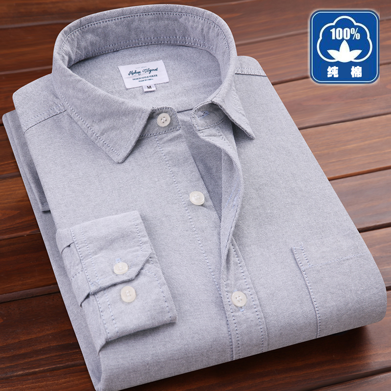 莎芭绮秋季男装休闲纯棉牛津纺衬衣长袖纯色打底男士牛仔衬衫上衣
