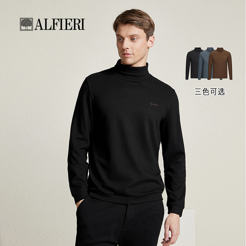 【慵懒打底衫】太平鸟男装 德绒长袖T恤冬季新款半高领纯色内搭男