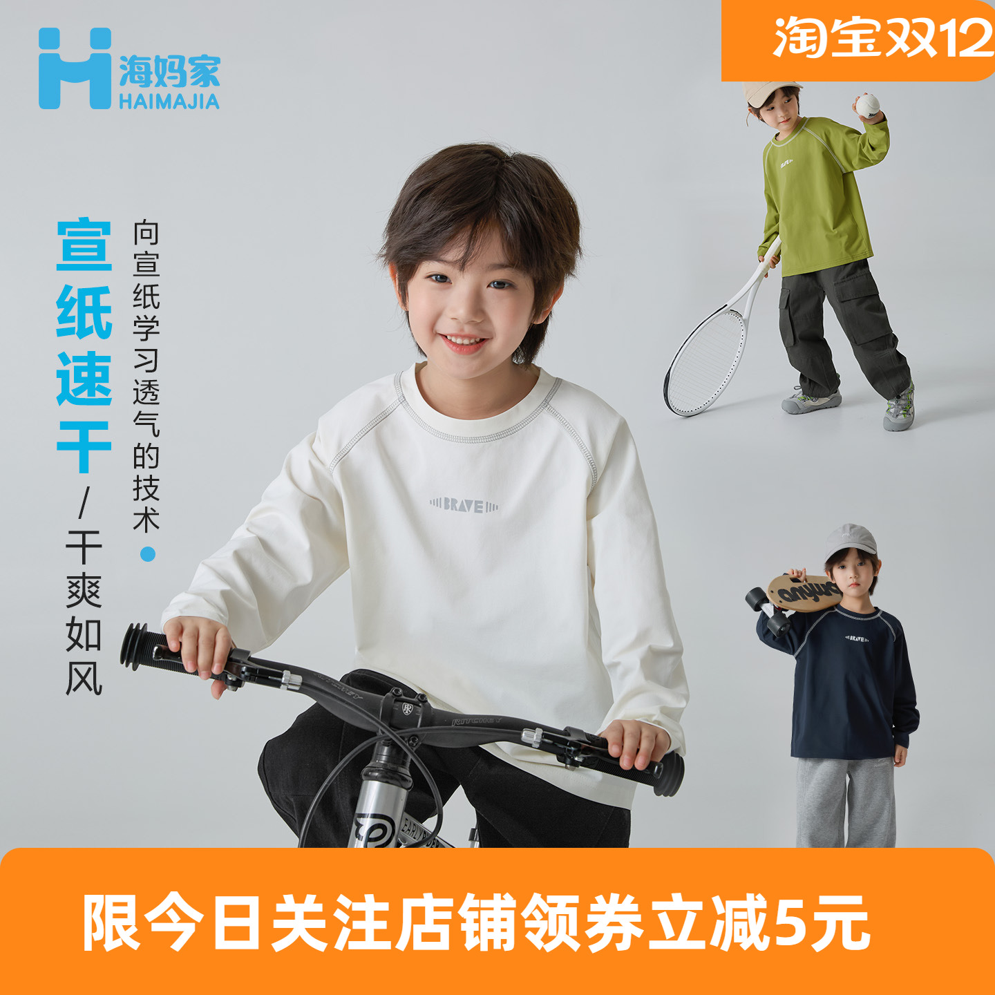 海妈家童装春秋上衣男童纯色打底男孩衣服洋气长袖T恤中大童宝宝