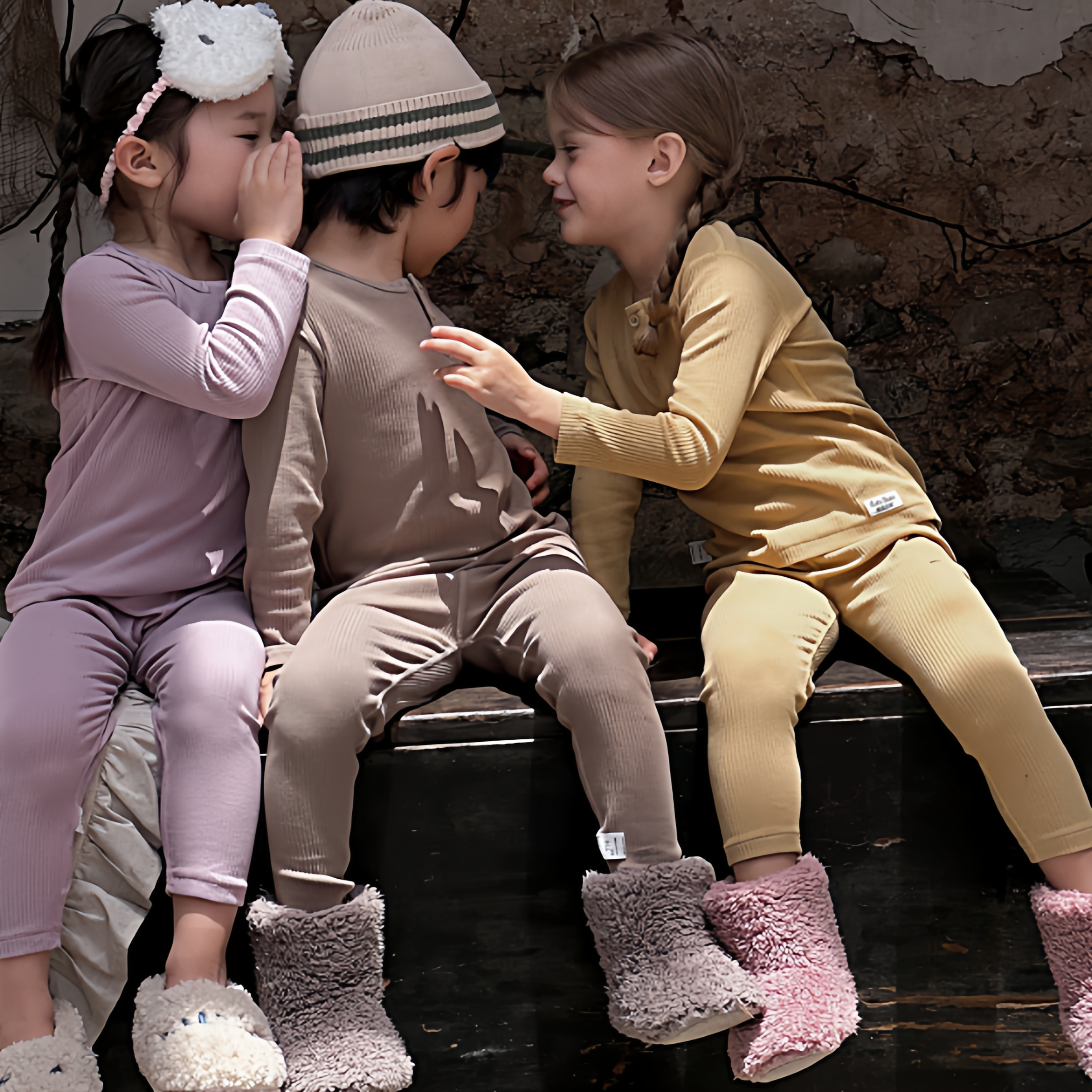 新款儿童纯色打底男女童秋衣秋裤套装纯棉超弹裸感拉架无骨新中式