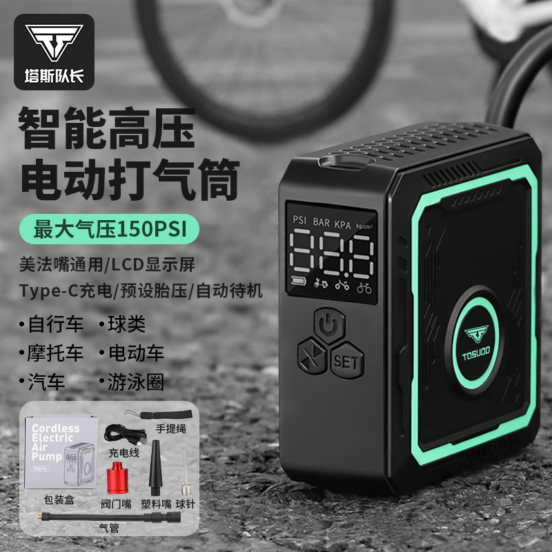 塔斯队长电动充气泵自行车打气筒便携式高压自动汽车篮球通用装备