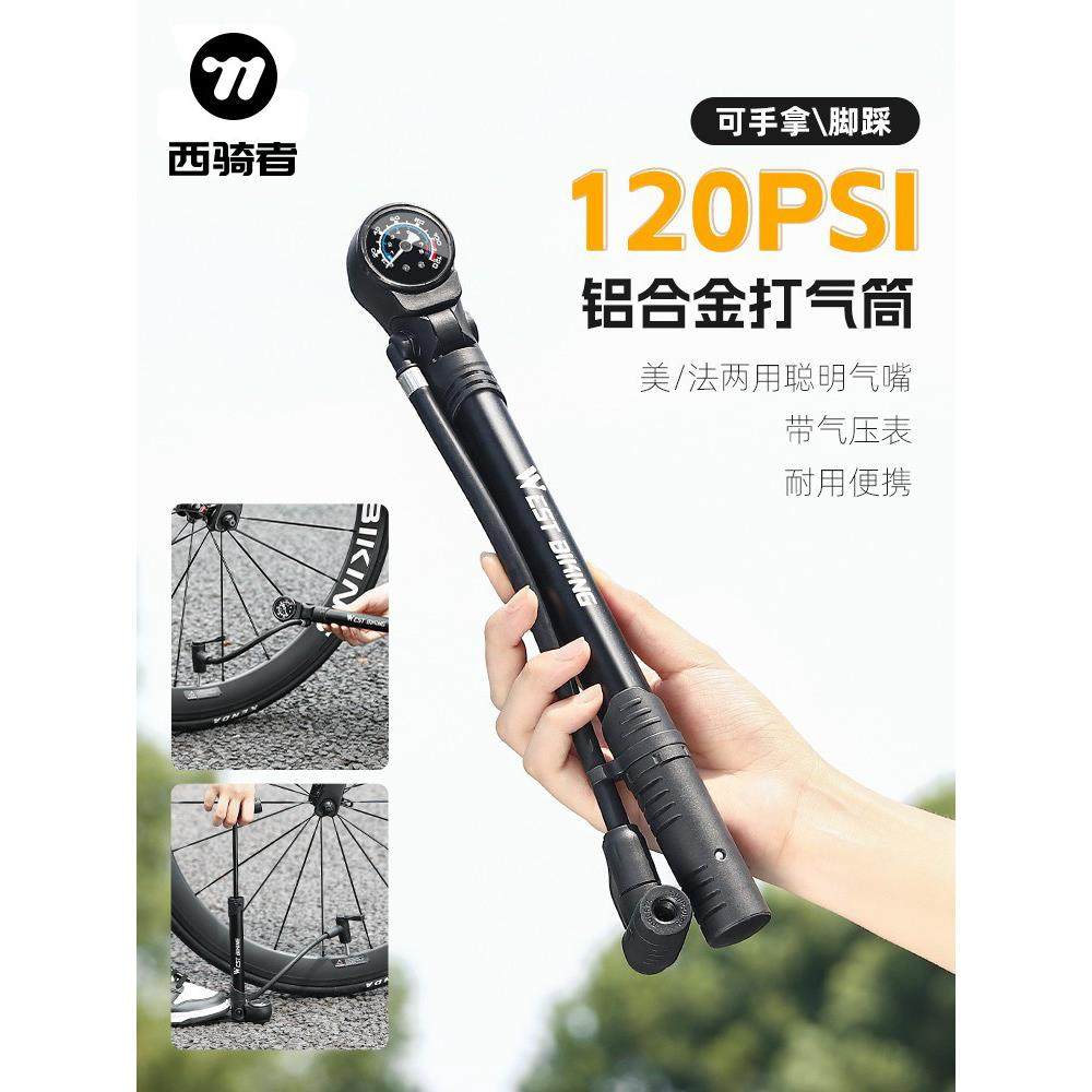 西骑者自行车打气筒便携式高压充气筒带气压表美法嘴通用单车气管