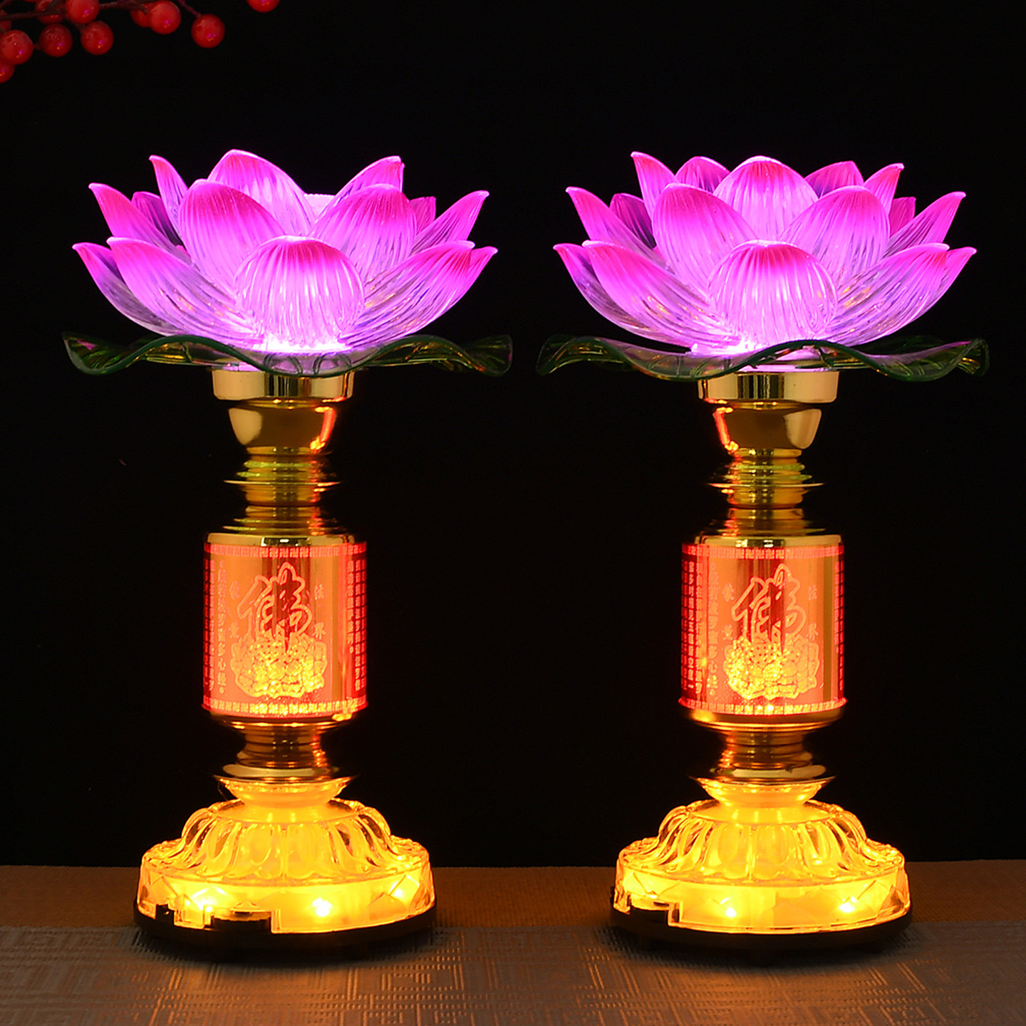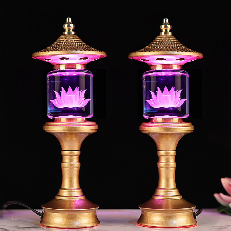 led莲花灯佛供灯佛灯佛前长明神灯观音供奉佛堂家用插电一对佛台