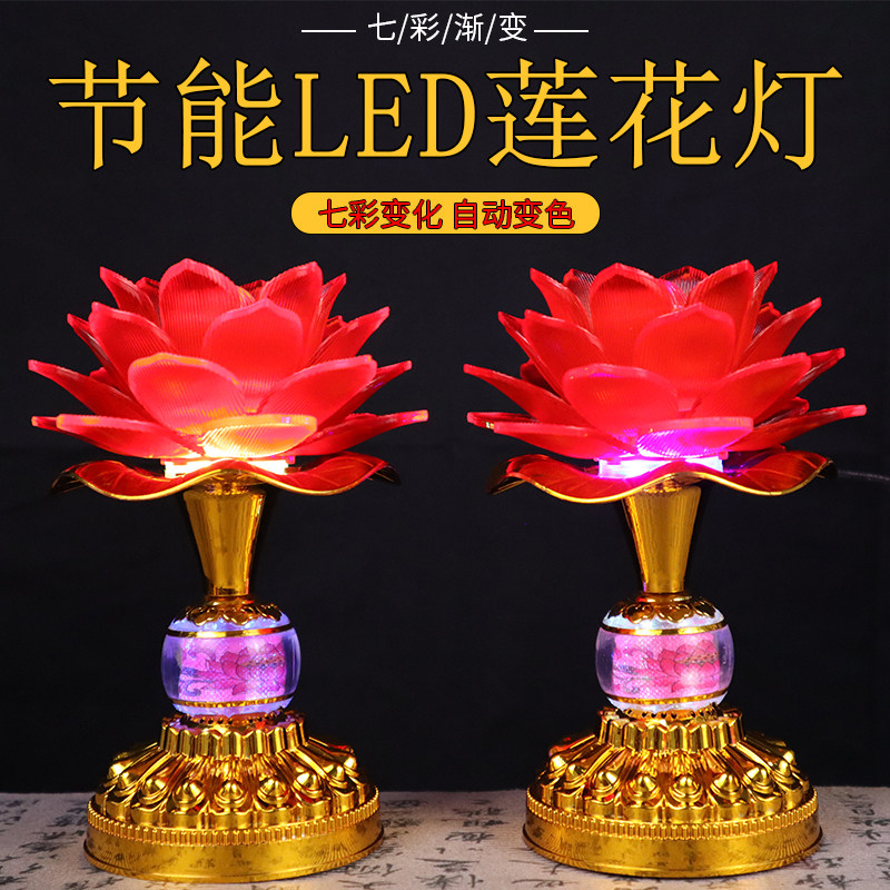 led莲花灯充电佛台前供佛灯七彩家用led插电长明灯观音菩萨佛堂灯