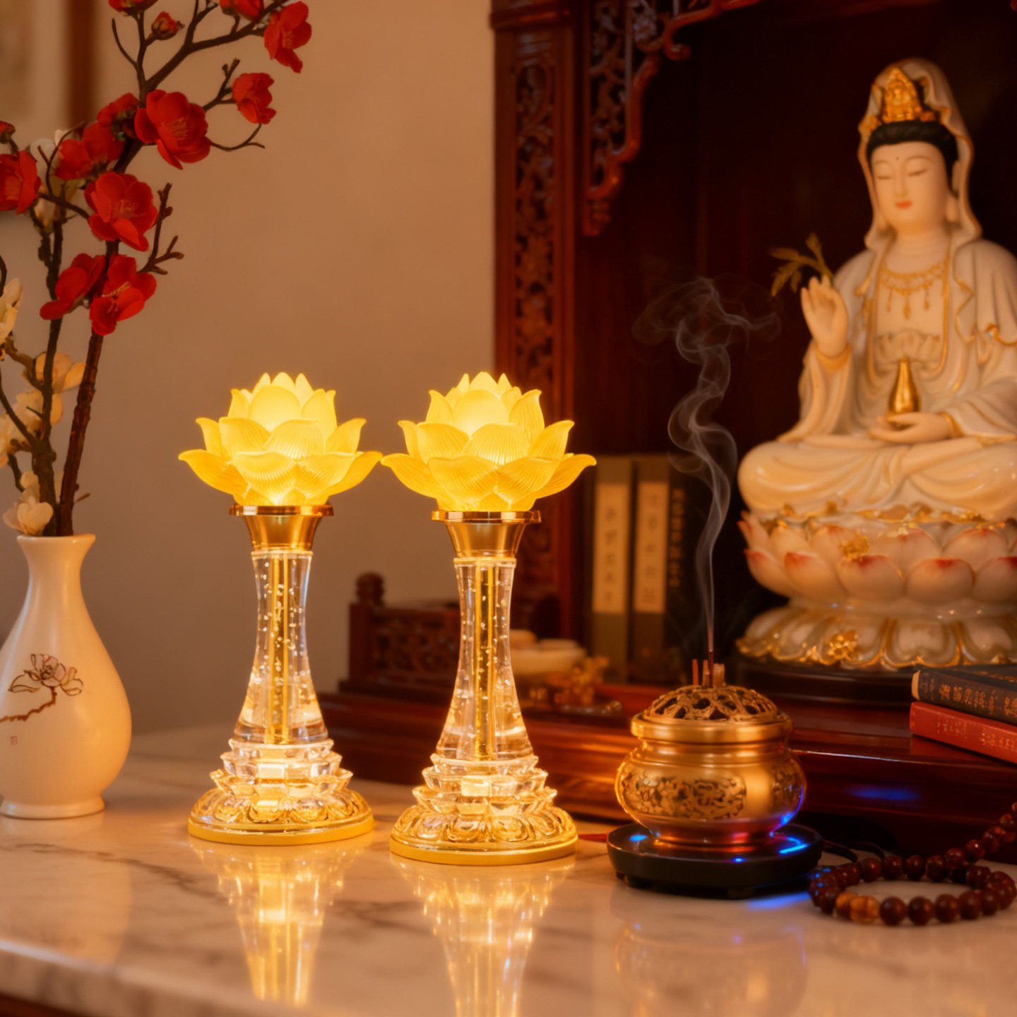 2025新款莲花灯佛供灯充电佛前供佛灯观世音供灯菩萨led琉璃佛堂