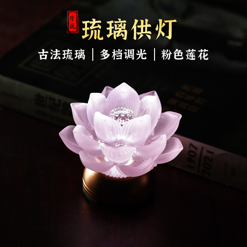 琉璃莲花灯2026新款家用一对七彩变色led长明灯观世音供佛前供灯