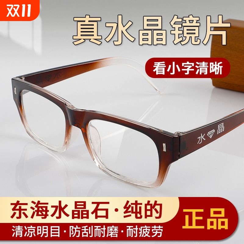 高清东海水晶天然石头玻璃防疲劳老花镜男女中老年老光眼镜旗舰店