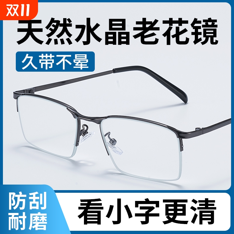 水晶老花镜男水晶玻璃女老花眼镜男老花镜男高清老人100150 250度
