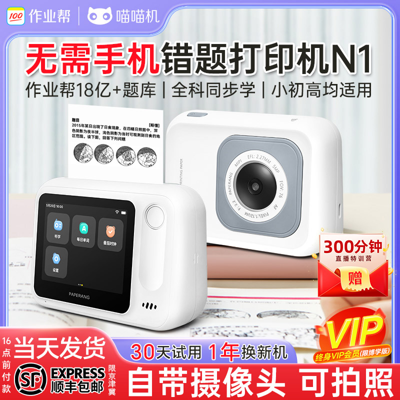 【政府补贴】作业帮喵喵机N1-4G博学版错题打印机初高中生专用可拍照无需手机免抄神器迷你便携学习打印机